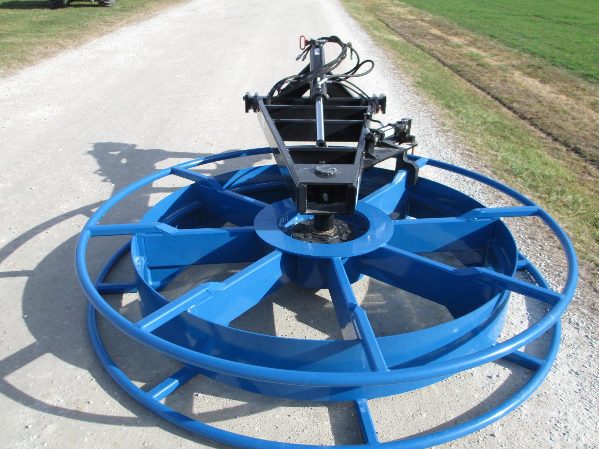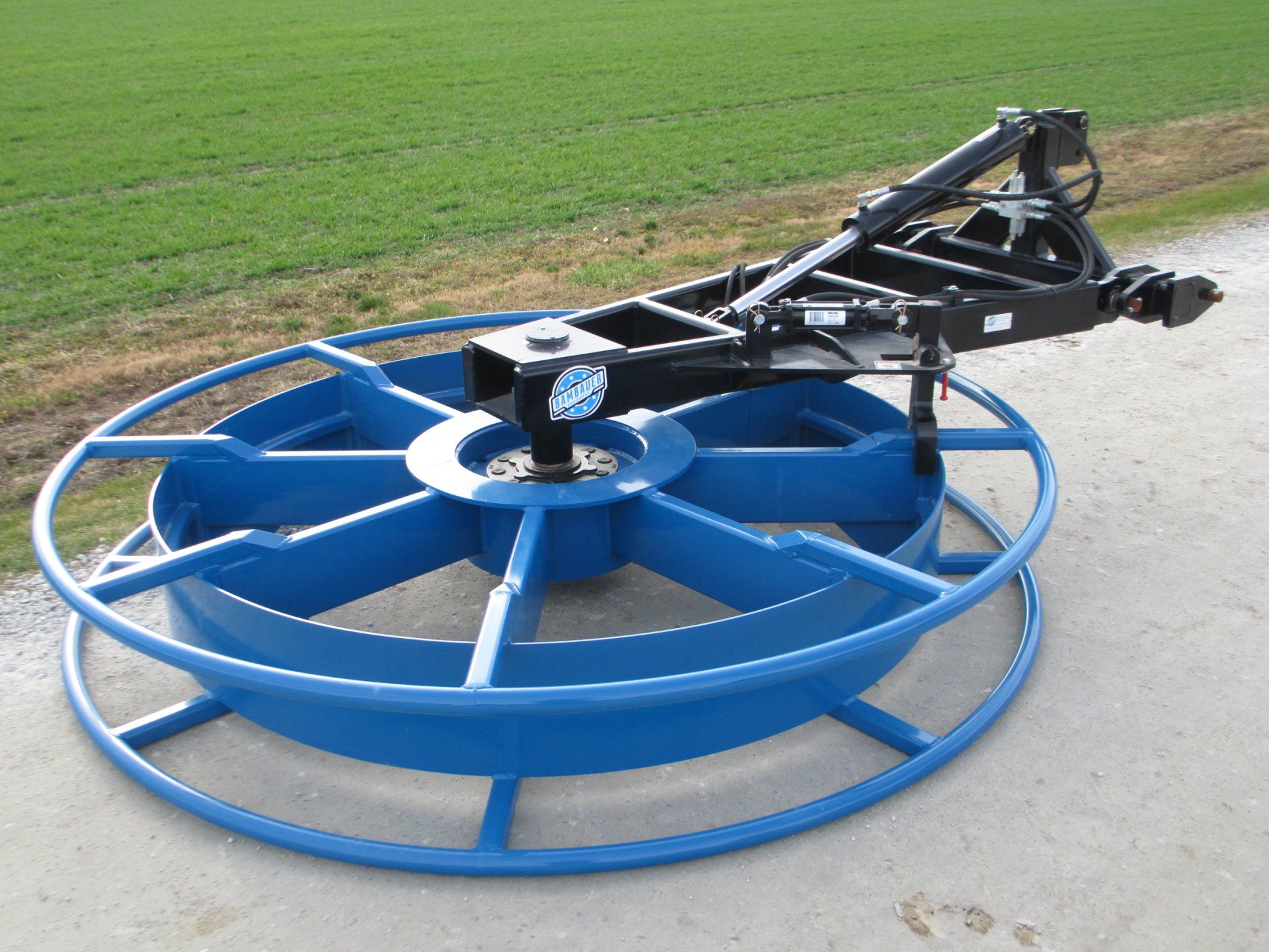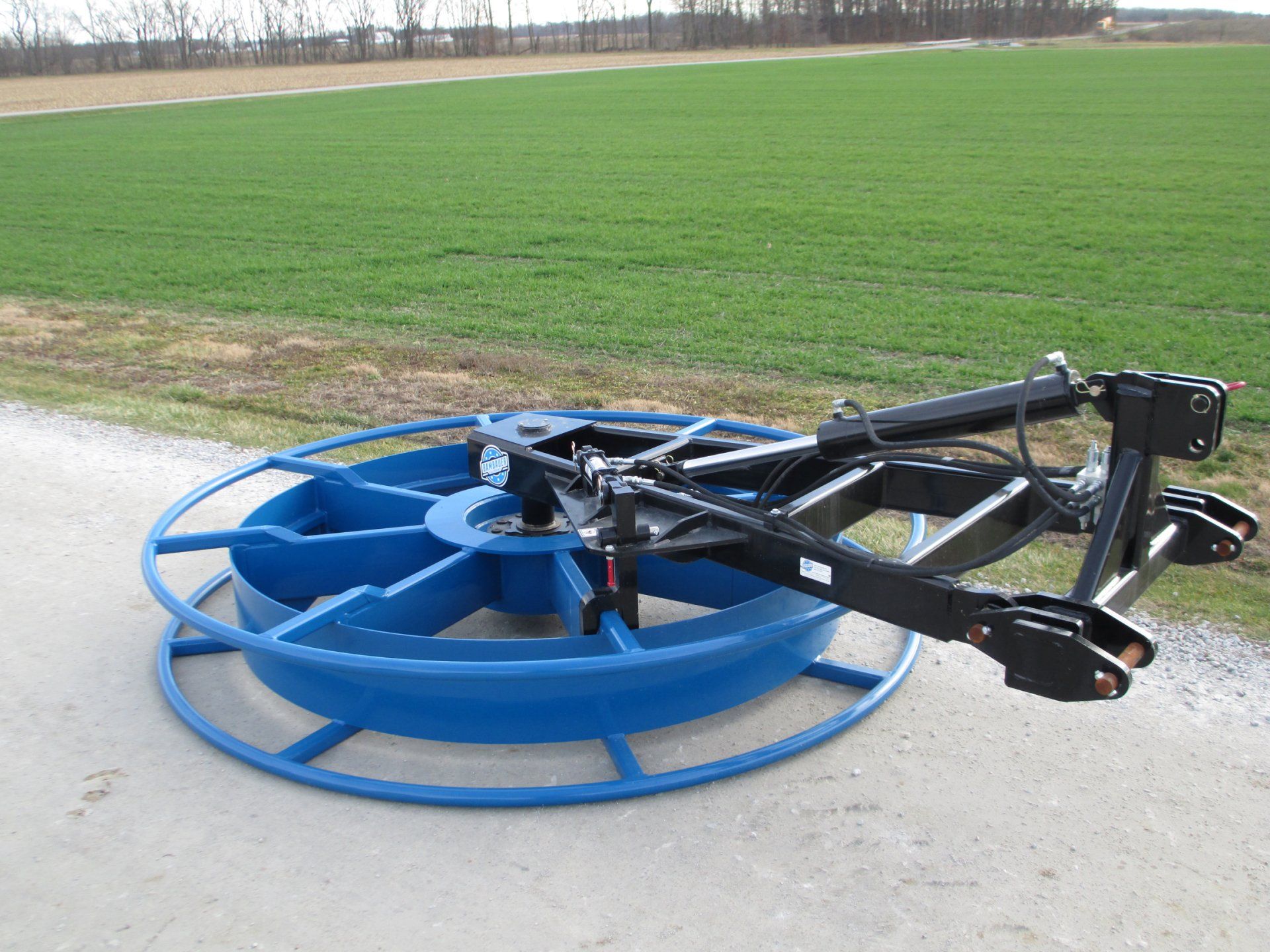 - Folds up tight so tractor hitch can be utilized to pull hose cart or other equipment