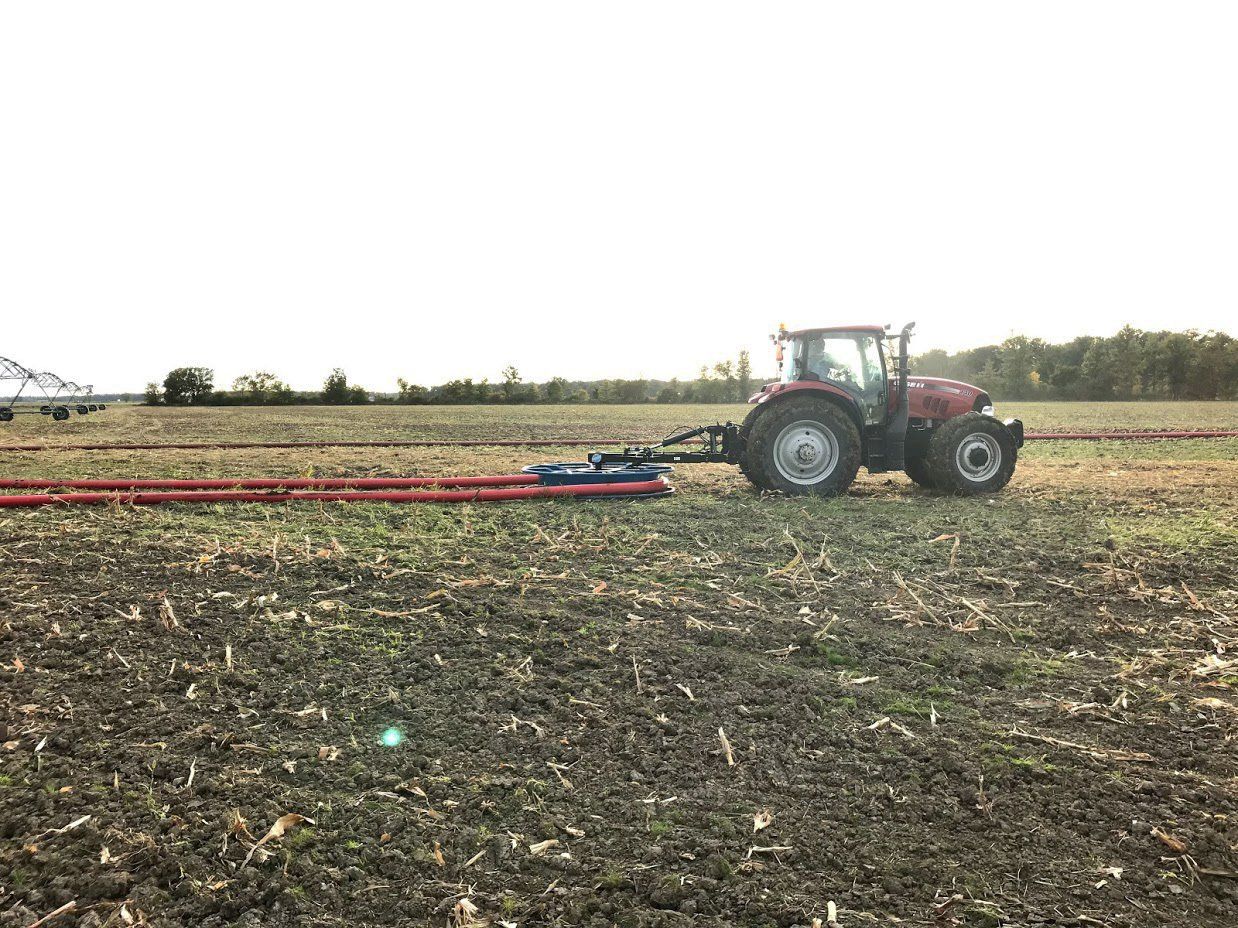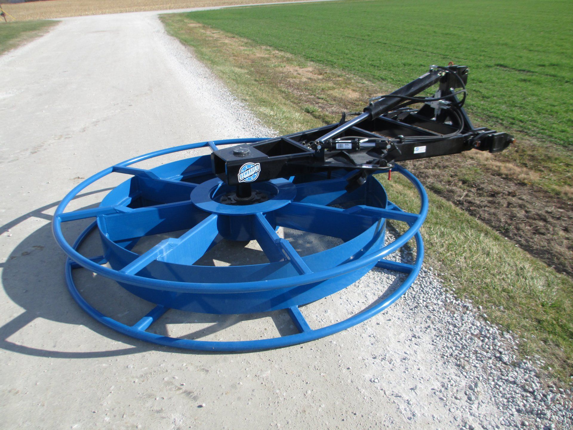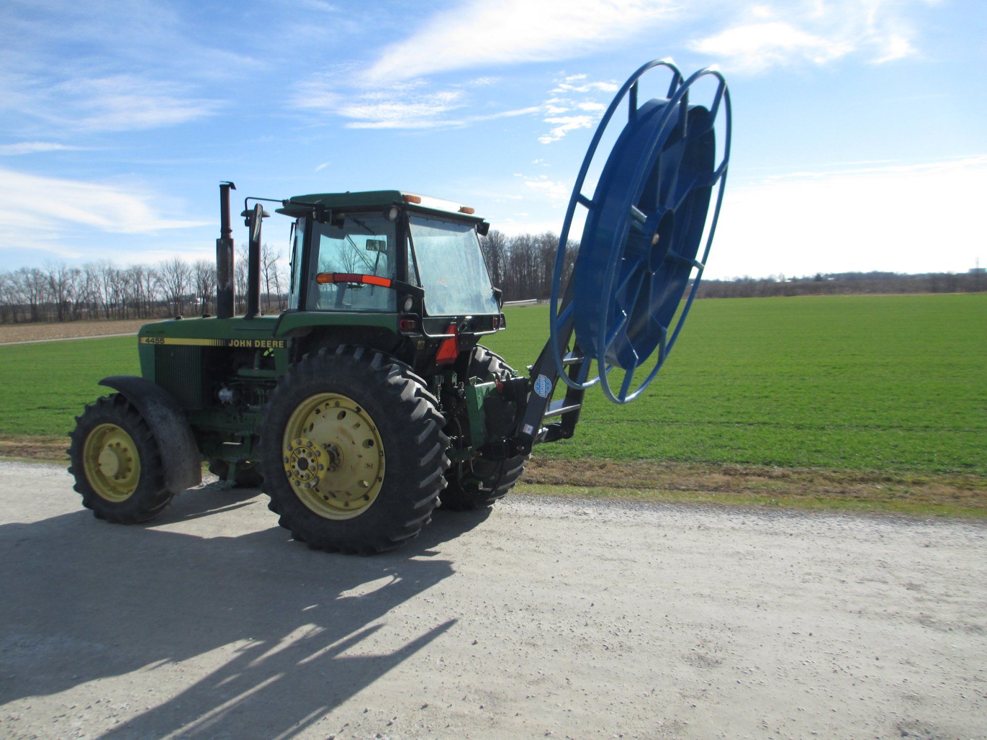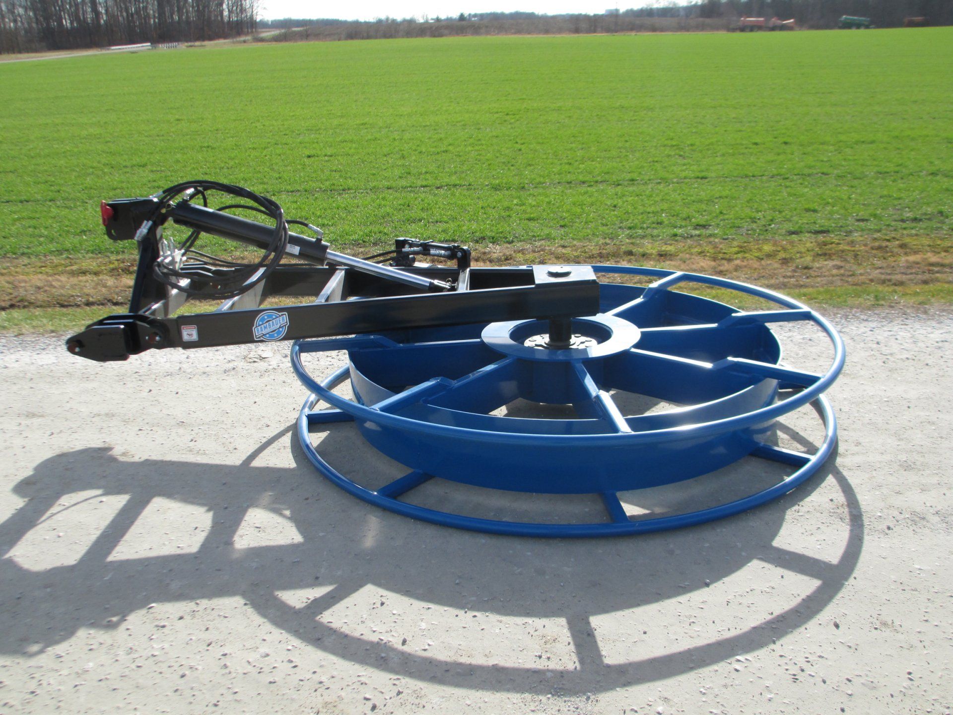 - Folds up tight so tractor hitch can be utilized to pull hose cart or other equipment