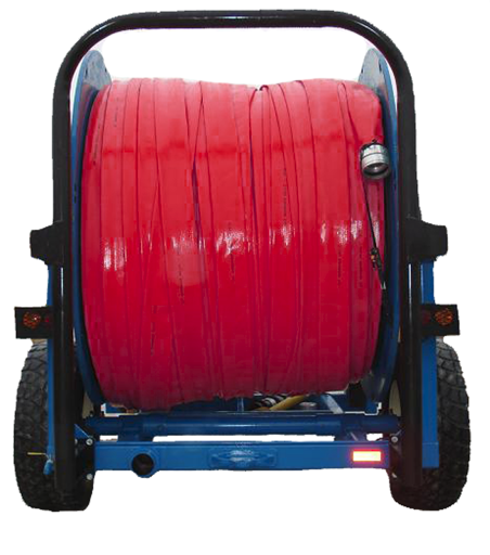 We offer various sizes of hose reels to properly handle high pressure lay flat hoses. Our equipment allows for the fastest way to deploy and retrieve the hose, allowing operations to run much faster and with more efficiency.