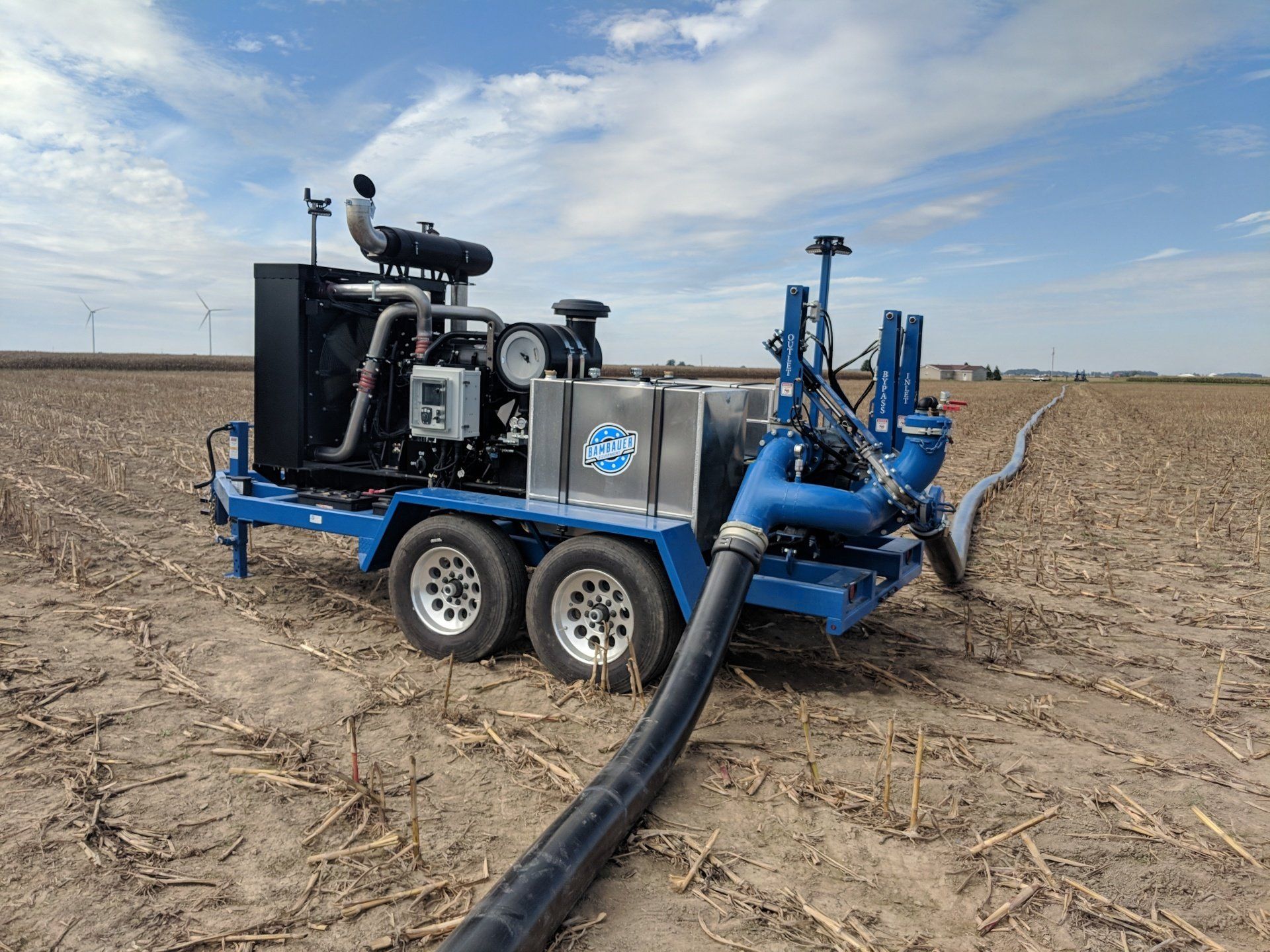 Bambauer Equipment is a large supplier of high-pressure lay flat hoses and drag hoses that we get in 40’ container lots. We stock this hose in our warehouse and distribute all across the USA and Canada.