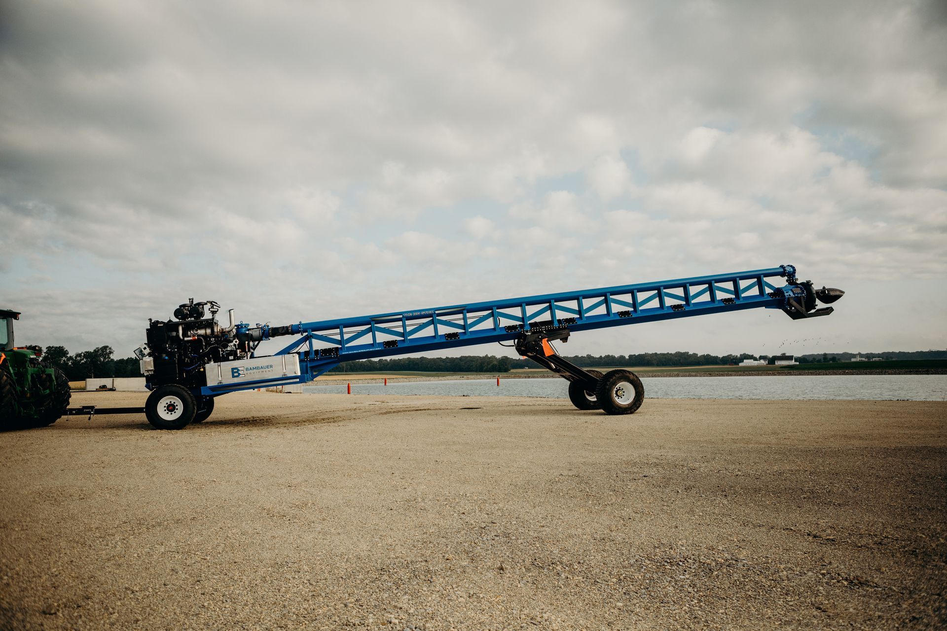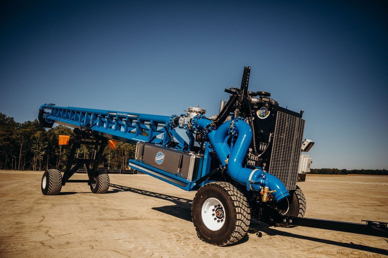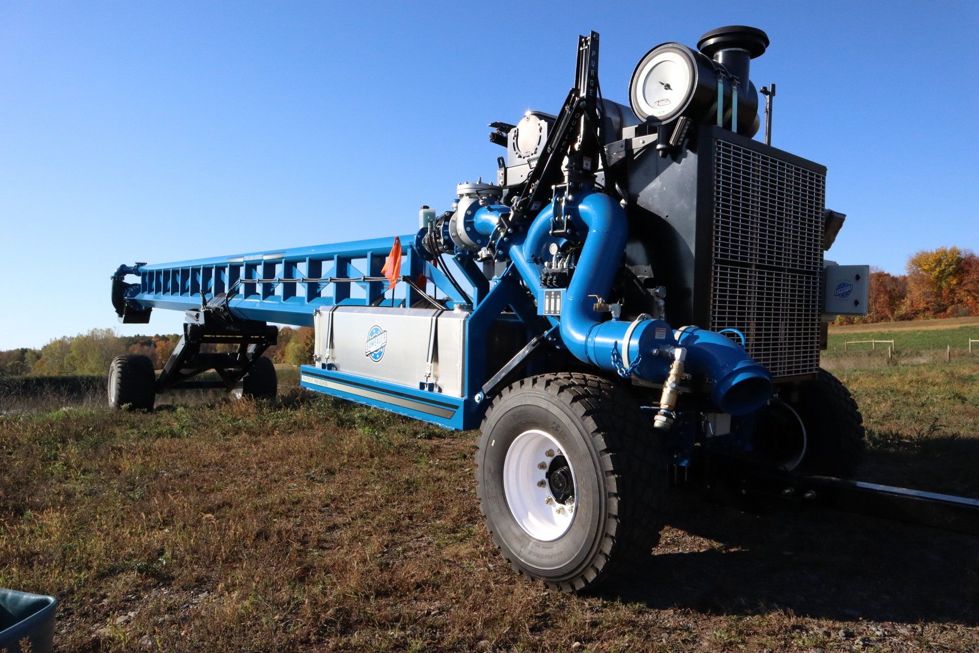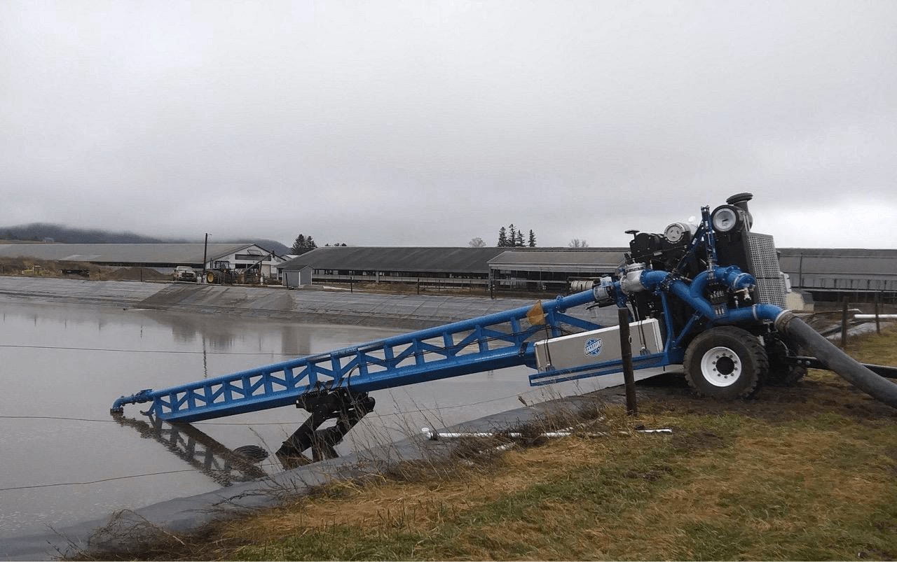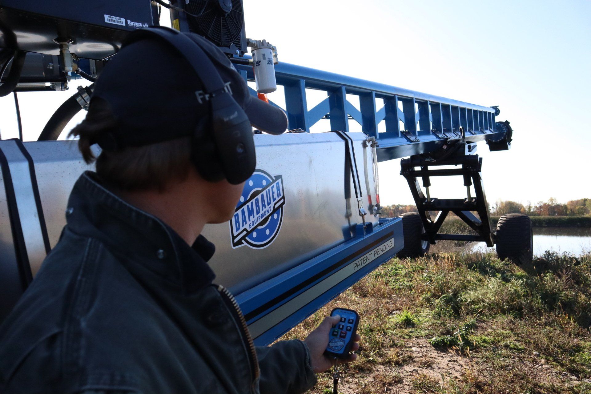 - Hand held wireless control operates all hydraulic functions when backing unit into lagoon pit.