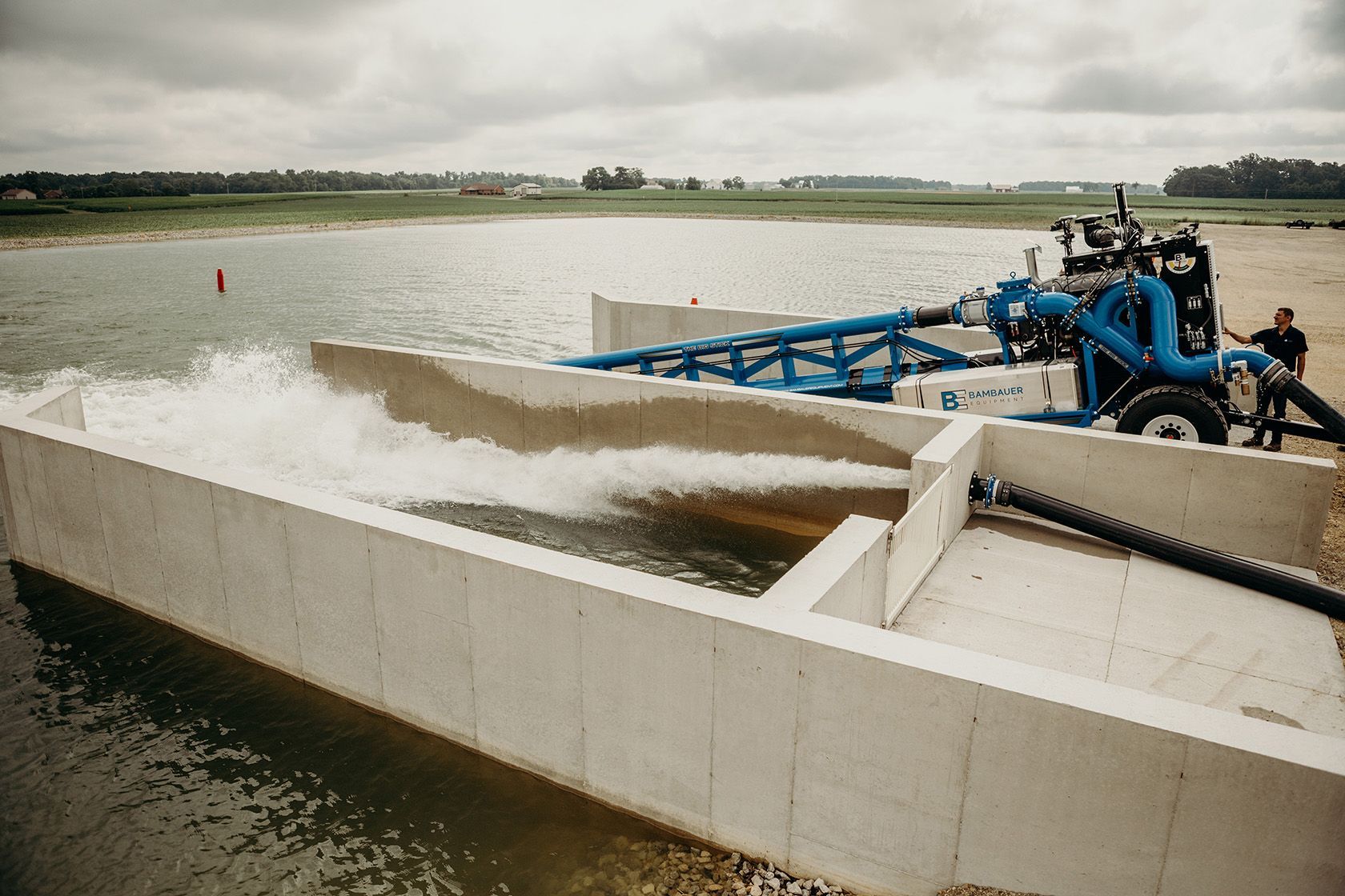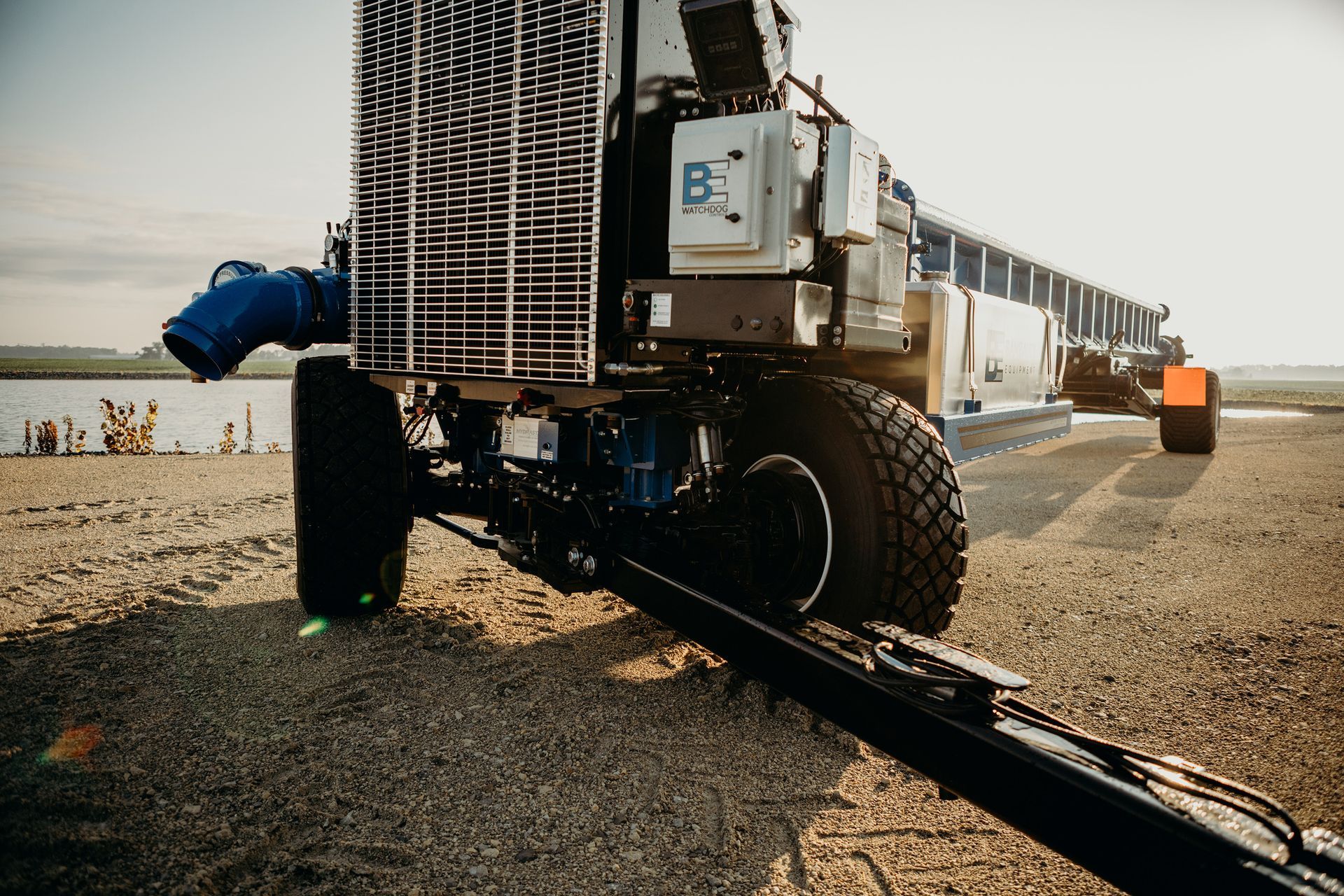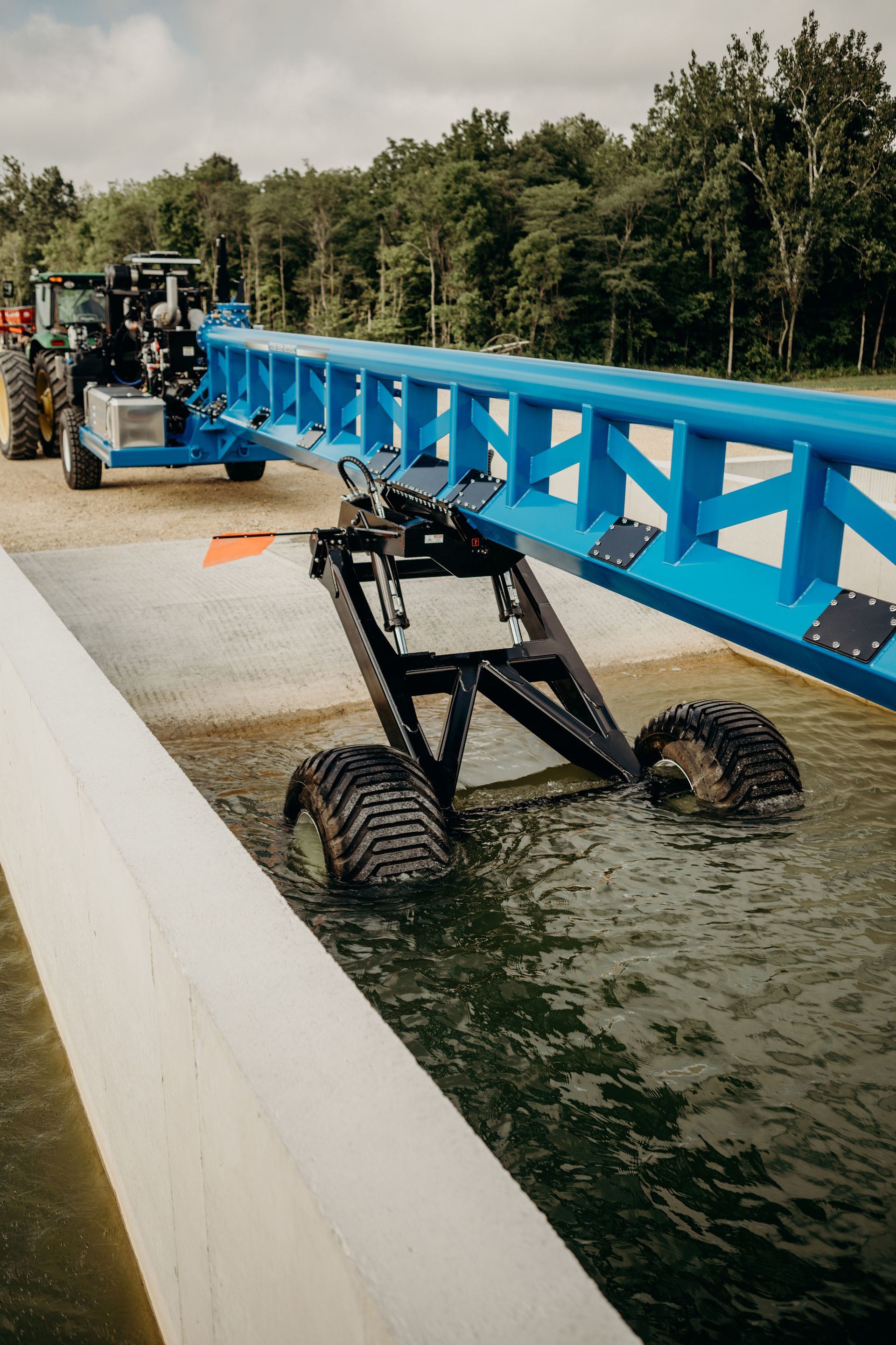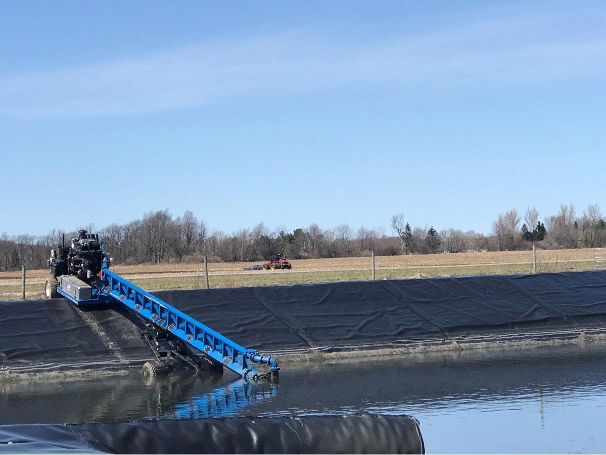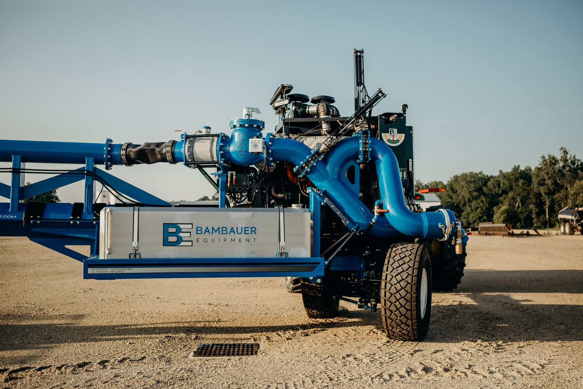- Hand held wireless control operates all hydraulic functions when backing unit into lagoon pit.